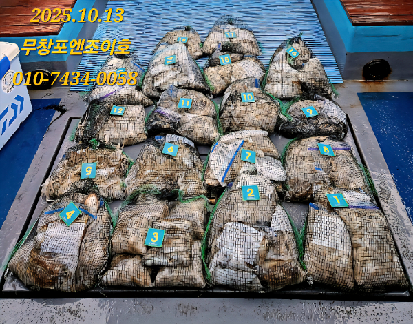 ![]() #출조모집 #출조안내 #조황정보 #침선#우럭 2025.10.13 무창포 엔조이호 쭈꾸미 출조 잘 다녀왔습니다. 엔조이호 오늘도 또~또~~말이 필요없는 날입니다. 엔조이호와 함께 해주신 우리 조사님들 정말 ♧엔조이호 내일10/14(화)5자리 여유있습니다. === 무창포 엔조이호 예약문의 === ■ 출조점 오시는길 : 충남 보령시 웅천읍 무창포로 306-1 ■ 출항지 오시는길 : 충청남도 보령시 웅천읍 관당리 무창포항 ■ 홈페이지 : http://enjoy.sunsang24.com/ ■ 네이버밴드 : https://band.us/band/72045328 ■ 엔조이호 예약문의 예약문의 : 010-7434-0058 |